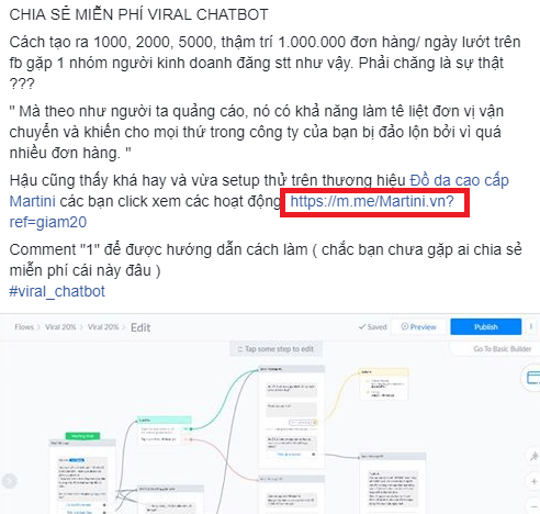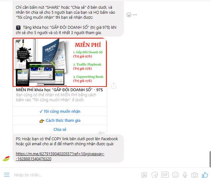 Lưu ý quan trọng: Các Chatbot Viral hiện đang được quảng cáo mạnh mẽ trên Facebook cũng đang hoạt động theo cơ chế này, tuy nhiên các Chatbot sẽ có tính năng đếm chính xác lượt chia sẻ thật của khách hàng mới tặng quà. Điều này bạn sẽ cần server riêng để chạy và tốn tiền để mua nó. Vì vậy nếu bạn không có ngân sách thuê chatbot thì có thể tự tạo miễn phí theo hướng dẫn của mình ở trên.