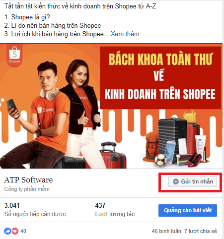 Cài đặt nút nhắn tin cho Fanpage trên các bài viết