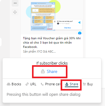 Như vậy khi cài đặt nút chia sẻ này thì việc lan truyền chatbot nó cực kỳ nhanh và lại không tốn một đồng chi phí quảng cáo nào. Hãy thử tưởng tượng 1 user share ít nhất 3 người, 3 người share 9 người và 9 người share 27 người,… Vậy thì số lượng sharing sẽ tăng theo cấp số nhân @@!