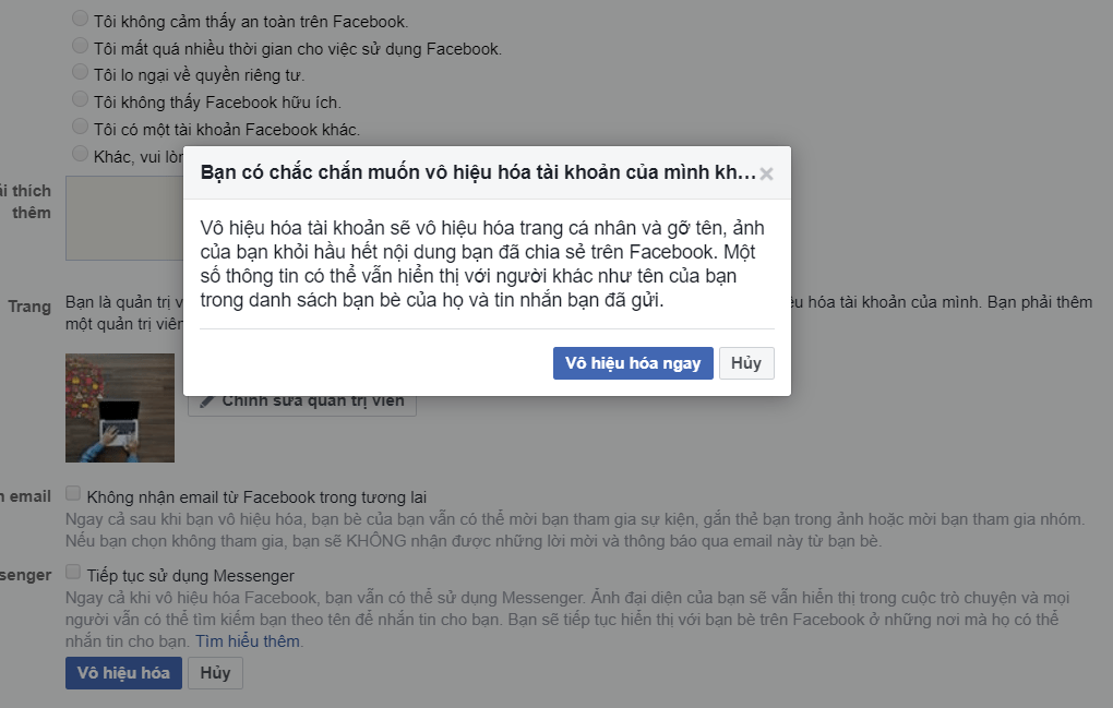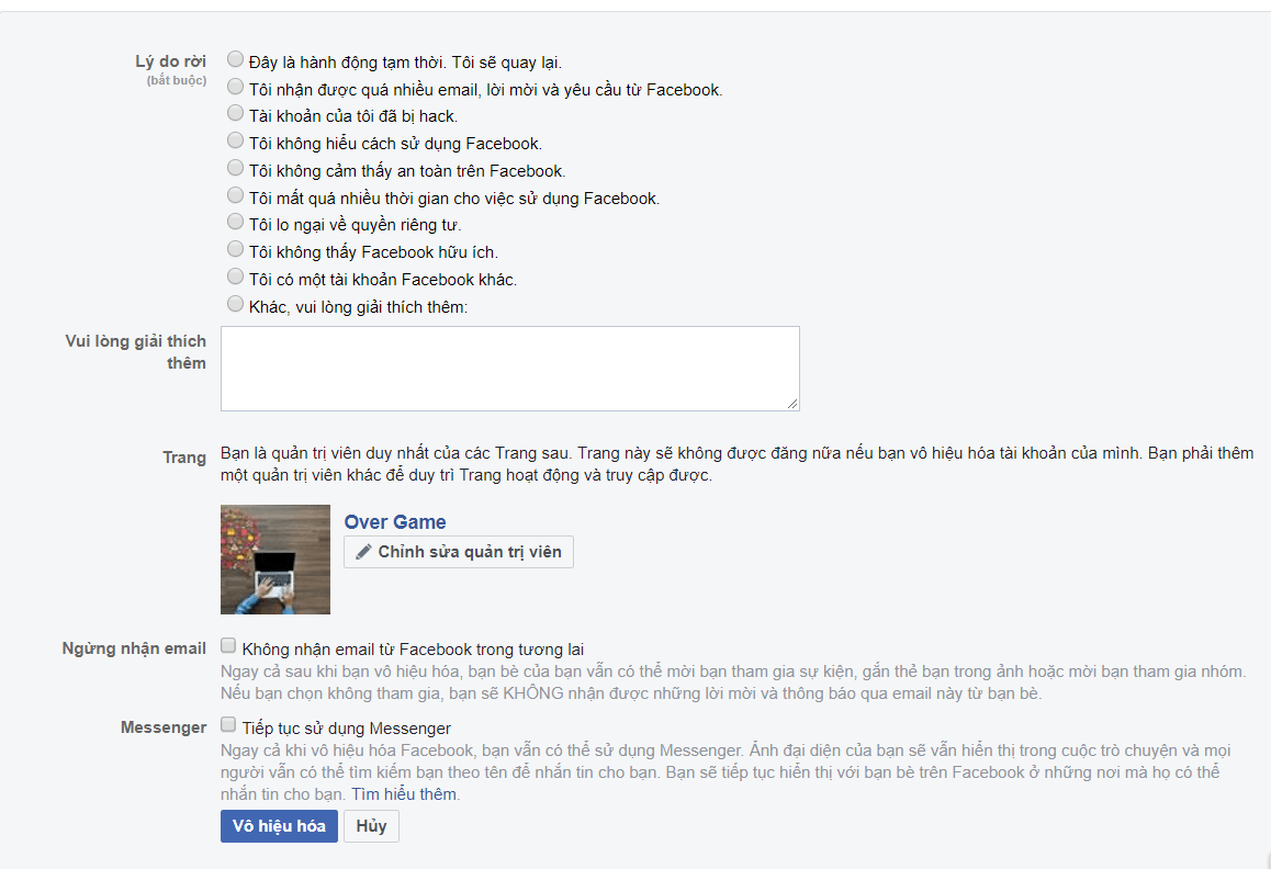 Có 2 hình thức vô hiệu hóa Facebook là vô hiệu hóa tạm thời hoặc xóa vĩnh viễn