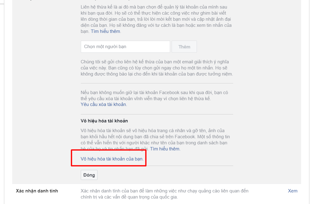 Nếu bạn vô hiệu hóa tài khoản của mình:
