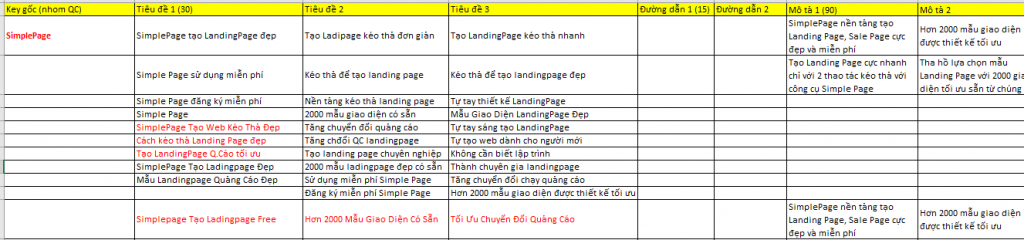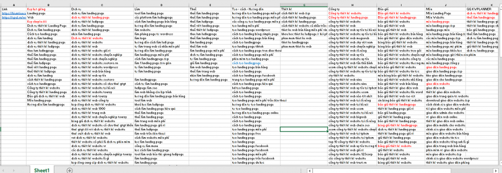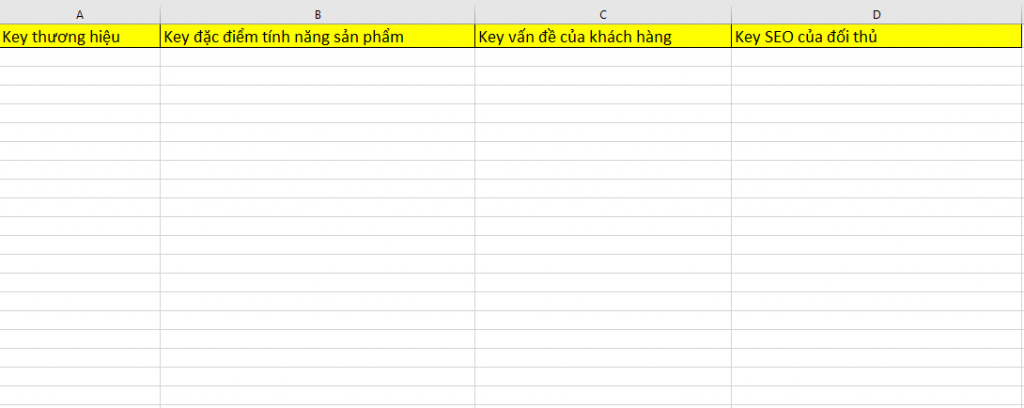 Hãy tạo 1 file excel đưa các từ khóa này thành các cột.