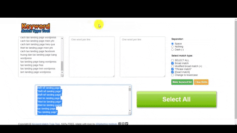 Tips: Trong quá trình xây dựng bộ từ khóa bạn sẽ bắt gặp các dạng từ khóa không dấu vì người dùng họ cũng thường tìm kiếm từ khóa không dấu, do đó mình gợi ý bạn sử dụng công cụ tạo các tư khóa không dấu đó là tienich.bambu.vn/towiac.aspx. Bạn chỉ cần truy cập và dán các nhóm từ khóa có dấu vào công cụ sẽ giúp tạo ra các từ khóa không dấu. Hãy copy và bổ sung vào file excel.